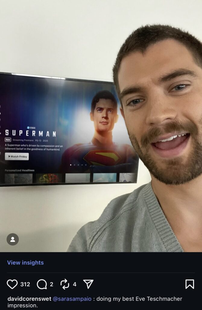 Através de suas redes sociais, o diretor James Gunn divulgou uma divertida foto do intérprete do grande super-herói da DC anunciando a chegada do Superman ao stream HBOMax. Confira: