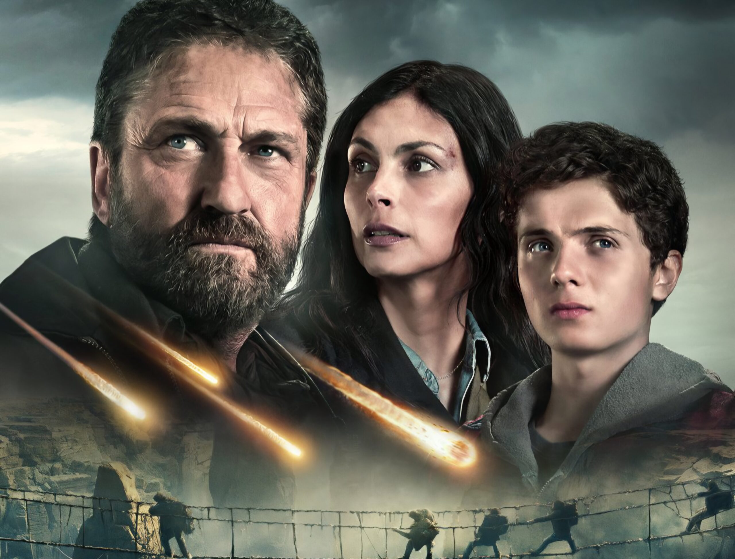 Destruição Final 2 traz de volta o trio familiar que aprendemos a amar: Gerard Butler (John Garrity), Morena Baccarin (Allison Garrity) e Roman Griffin Davis (Nathan Garrity).