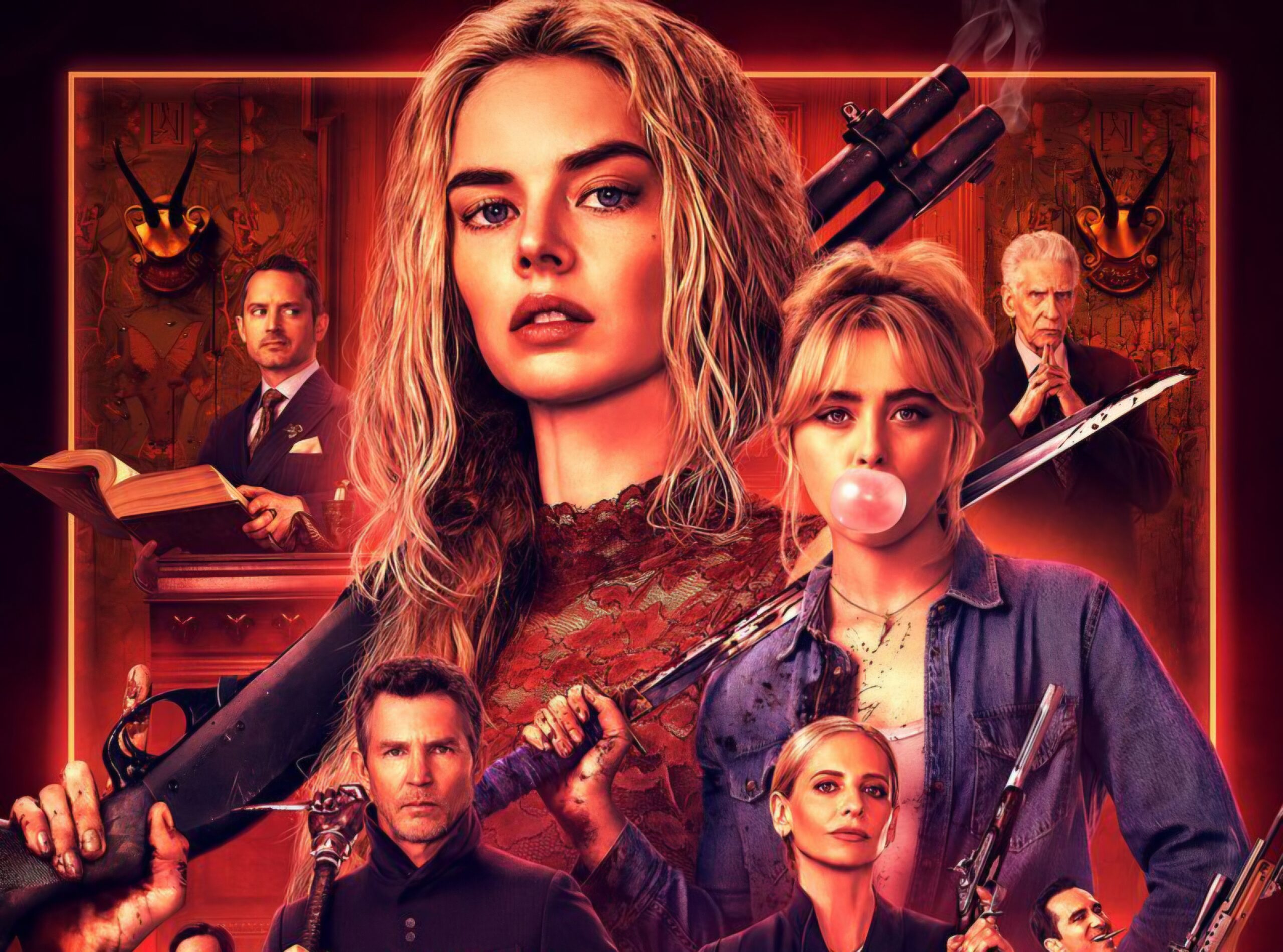 O elenco reúne um time impressionante, encabeçado por Samara Weaving e Kathryn Newton. Juntam-se a elas nomes de peso da indústria como Sarah Michelle Gellar, Shawn Hatosy, Néstor Carbonell e o icônico David Cronenberg, além de Elijah Wood, Kevin Durand, Olivia Cheng, Varun Saranga e Daniel Beirne.